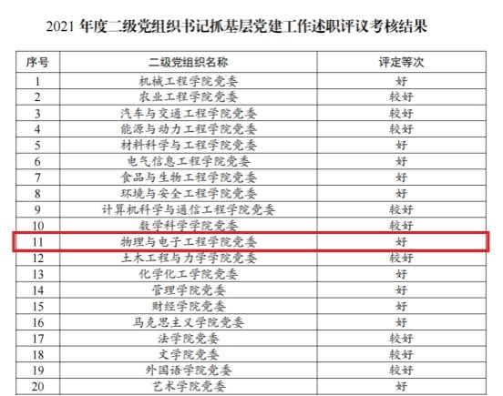 近日,校党委公布了2021年度二级党组织书记抓基层党建工作述职评议考核结果,高清AV党委被评定为“好”等次。