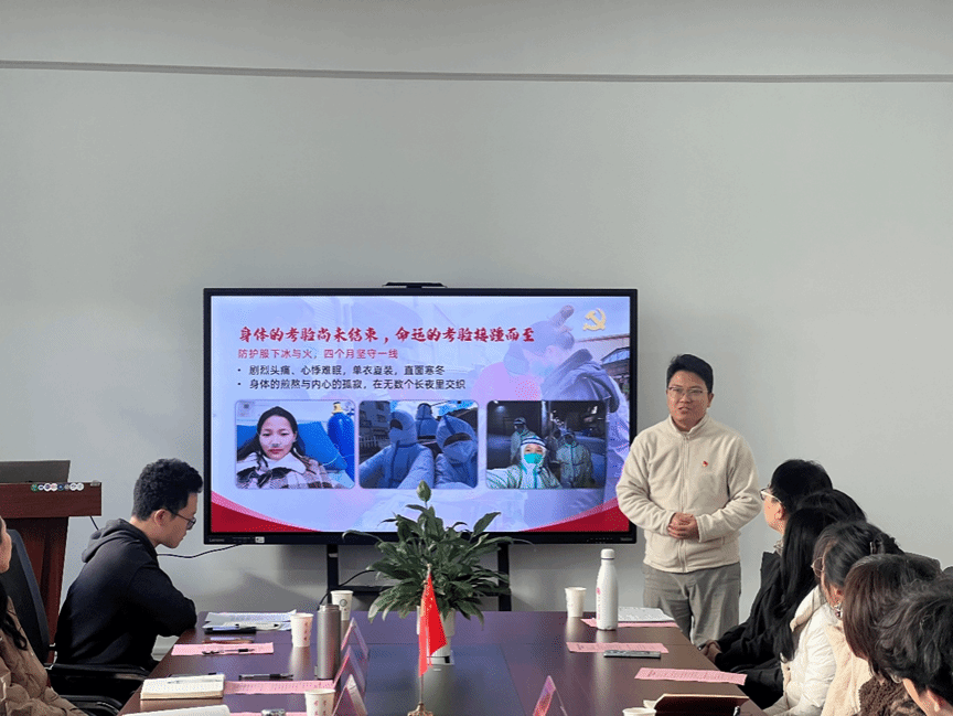 杨伟伟老师分享了学院的优秀毕业生党员张米茶积极响应国家号召,毅然加入西部计划西藏专项,将青春与知识投入西部建设中,最后坚守在西藏,为当地的教育发展不断奋斗的事迹,展现了物电学子用实际行动践行教育家精神的风采。