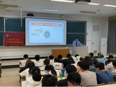 王旭东带领同学们一同学习《中华人民共和国反恐怖主义法》中的有关内容,结合视频等多种形式讲解了恐怖主义的定义、恐怖活动识别、常见的恐怖袭击手段等,通过列举现实案例让同学们加深认识,同时他详细介绍了紧急情况下进行自救的安全防范知识,引导大家增强自身防护意识。