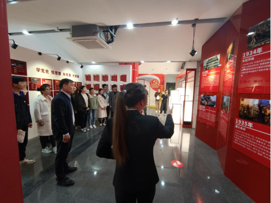 在讲解员带领下,大家依次参观学习了“新时代中国共产党的历史使命”“党史大事记”“高清AV 历史变迁”“党史同心圆”“我们的成就”“习近平总书记金句”等板块内容。参观活动现场,在院党委书记潘金彪带领下,全体党员重温了入党誓词。