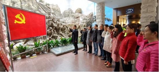 在院党委书记潘金彪带领下,党员同志在党旗下重温入党誓词,接受心灵洗礼,牢记共产党员的政治责任和历史使命。