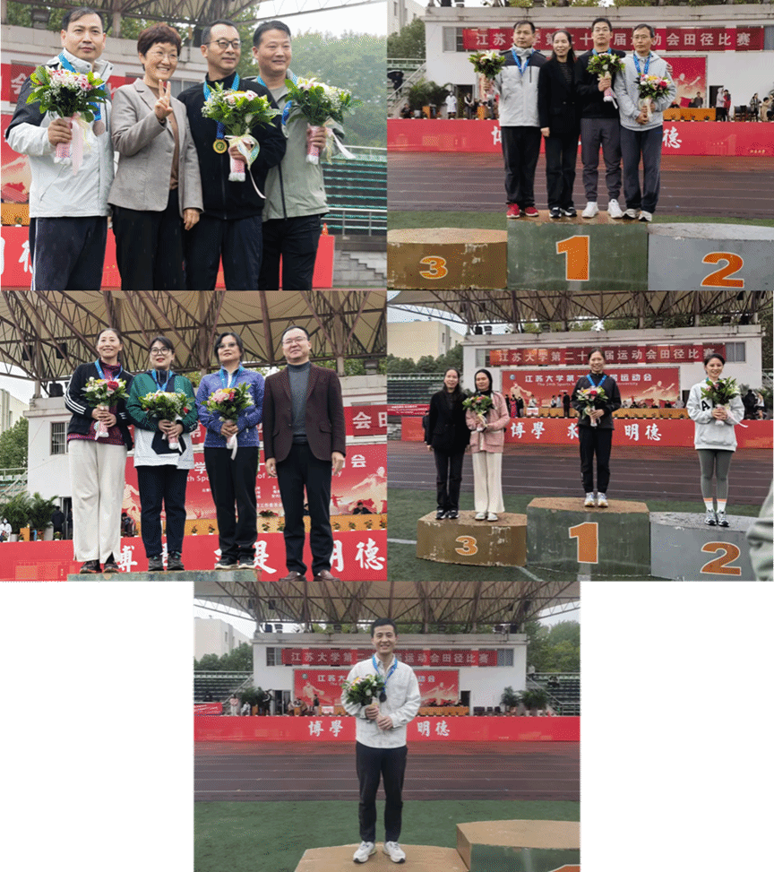 运动会上,运动健儿们奋力拼搏,勇往直前。在田径项目中,潘金彪、徐桂东和童先奇在男B跳远和男A跳远中分别获得第三、六、三名,冯伟、谢月娥和潘金彪分别在女B铅球和男B铅球中获得第一、二、三名,谢月娥和殷红飞分别在女B跳远中获得第四、六名,潘金彪和冯伟分别在男B铅球和女A铅球中获得第四、七名,刘倩和张慧敏在女A400米中获得第三、六名,在女A1500米中分别获得第四、七名,邢亚林和殷红飞分别在男B1500米和女B1500米中分别获得第六、七名,杨伟伟在男A400米中获得第七名,童先奇在男A100米中获得第八名,郑慧茹、刘倩、魏英聪、童先奇获4*100米接力第五名,项目总分位列各学院第2名。团体项目中,参赛队员们再创佳绩,斩获动力火车第二名、摸石过河第四名的好成绩!
