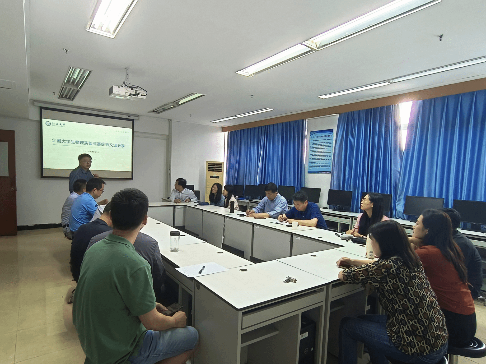 为深入贯彻以赛促教、以研促改的教学理念,推进物理实验课程教学改革与教师教学能力提升,近日,物理实验中心在实践楼802教室举办全国大学生物理实验竞赛(创新)讲课类比赛教研交流活动。活动由中心主任徐晨光主持,邀请学院副院长徐晶,校教学督导组成员张九如、郑敏学参加教研活动。