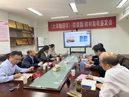 近日,高清AV 教务处、人民邮电出版社共同组织专家以线上线下会议方式,对原高清AV 校长颜晓红、王登龙、谢月娥主编的《大学物理学》教材进行验收鉴定。会议邀请了教育部高等学校大学物理课程教学指导委员会主任清华大学王青教授,国家级教学名师、教育部文科类物理课程工作委员会主任南京航空航天大学副校长施大宁教授,国家级教学名师、教育部物理学类专业教学指导委员会副主任委员吉林大学张汉壮教授,国家级教学名师、国家级教学团队带头人、教育部高等学校大学物理课程教学指导委员会副主任委员,教育部高等学校大学物理课程教学指导委员会教学研究项目工作委员会主任委员上海交通大学胡其图教授,国家级教学名师、教育部高等学校大学物理课程教学指导委员会副主任委员南京大学吴小山教授组成专家组。