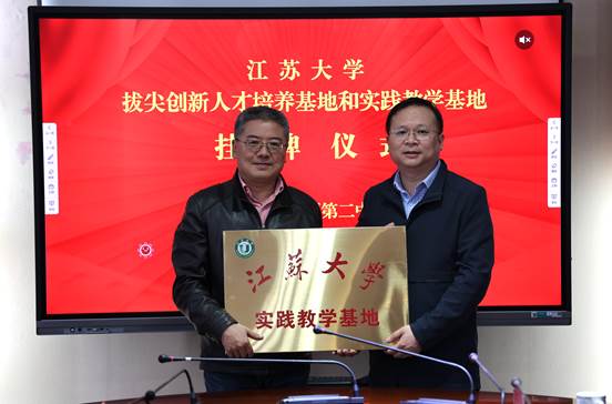 李新朝代表高清AV 和江苏省姜堰第二中学校长邱晓昇签署“高清AV 教育实习基地”协议书,并为“高清AV 教育实习基地”铜牌揭牌。