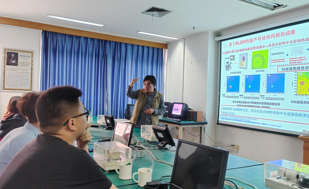 示范课上,许伯强教授由航母钢板焊接处的虚焊问题引出了无损检测技术,将课程内容与实际应用紧密结合,使得师生们深刻体会到习近平总书记所说的“广大科技工作者要把论文写在祖国的大地上,把科技成果应用在实现现代化的伟大事业中”。随后,许伯强教授从实际检测技术中常见的一些方法以及不足方面开始讲授,提出了明确的优化方向,并展示了所在团队的一些研究成果及其应用,加深了课程和日常生活的联系,讲课生动有趣,课堂气氛活跃,教学效果良好,使研究生在深入学习课程内容的同时,更深刻感受到无损检测技术的用途之广,激发了学生们的学习科研兴趣。