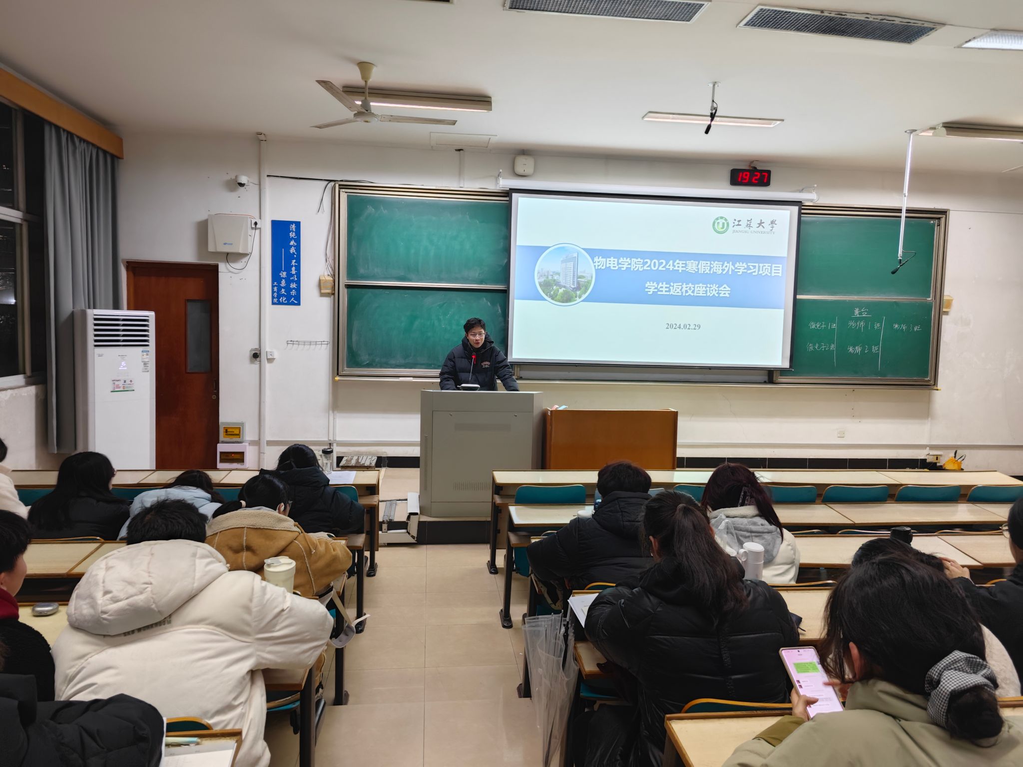 2月29日,高清AV 在讲堂群101教室召开2024年寒假海外学习项目学生返校分享会。高清AV 辅导员杨伟伟,参加海外学习项目学生以及大一年级学生参加本次活动。