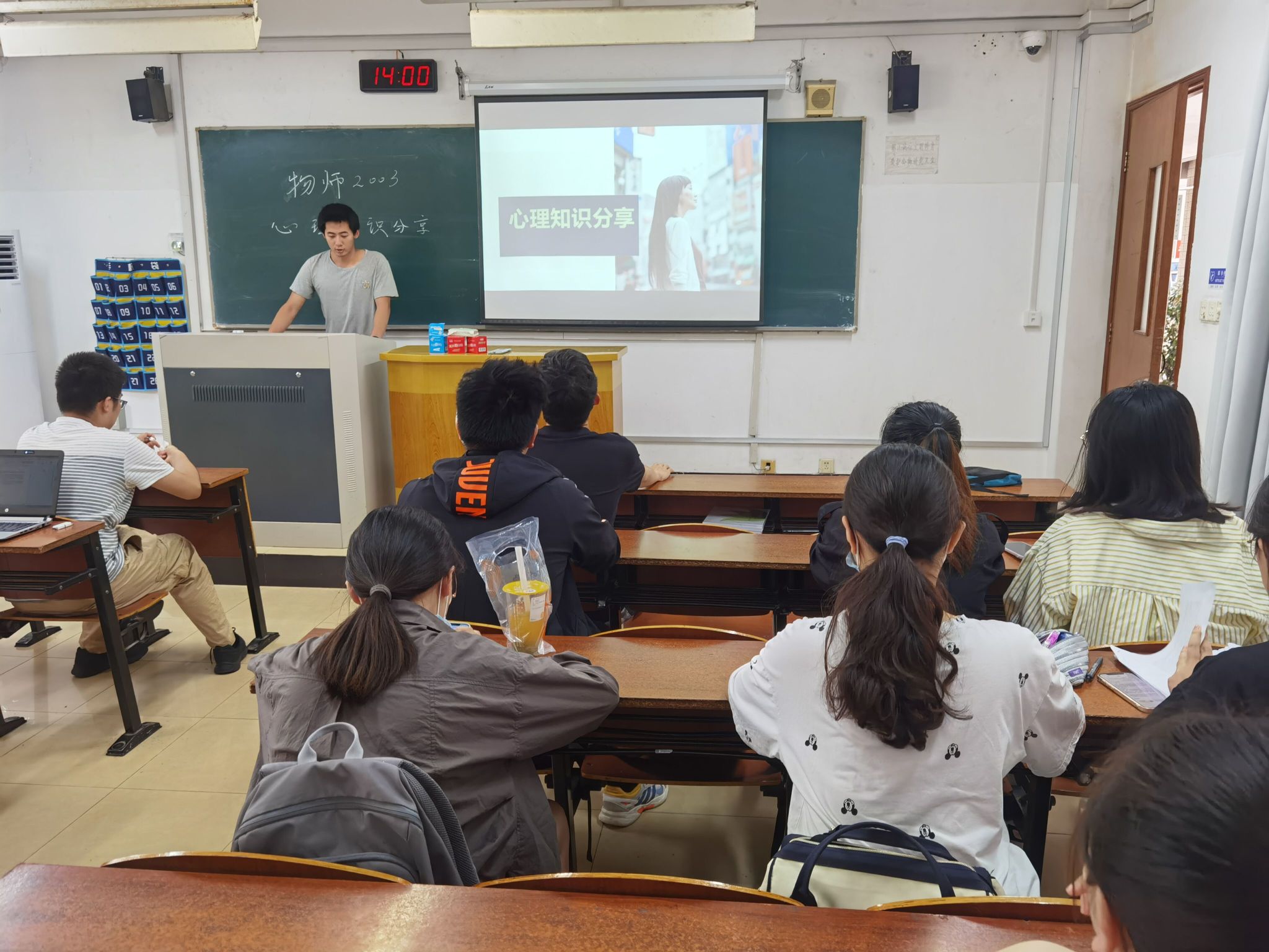 6月1日,物师2003班在三山楼115举办“放飞心灵”心理知识分享会。活动由心理委员朱龙蕴主持,全体班级成员参加。