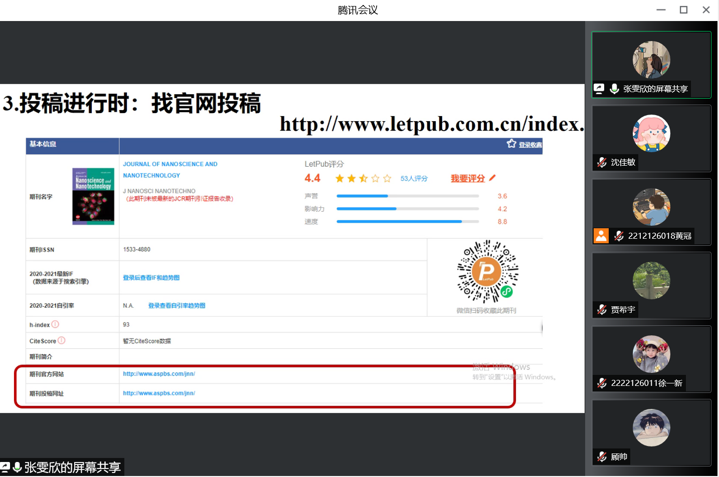 5月24日,为促进优秀科研成果交流,创造研究生学术交流机会,高清AV 研究生会举办了线上SCI投稿学习交流会。此次交流会邀请了优秀研究生代表薛双双、张雯欣同学,由院研会学术部主持。