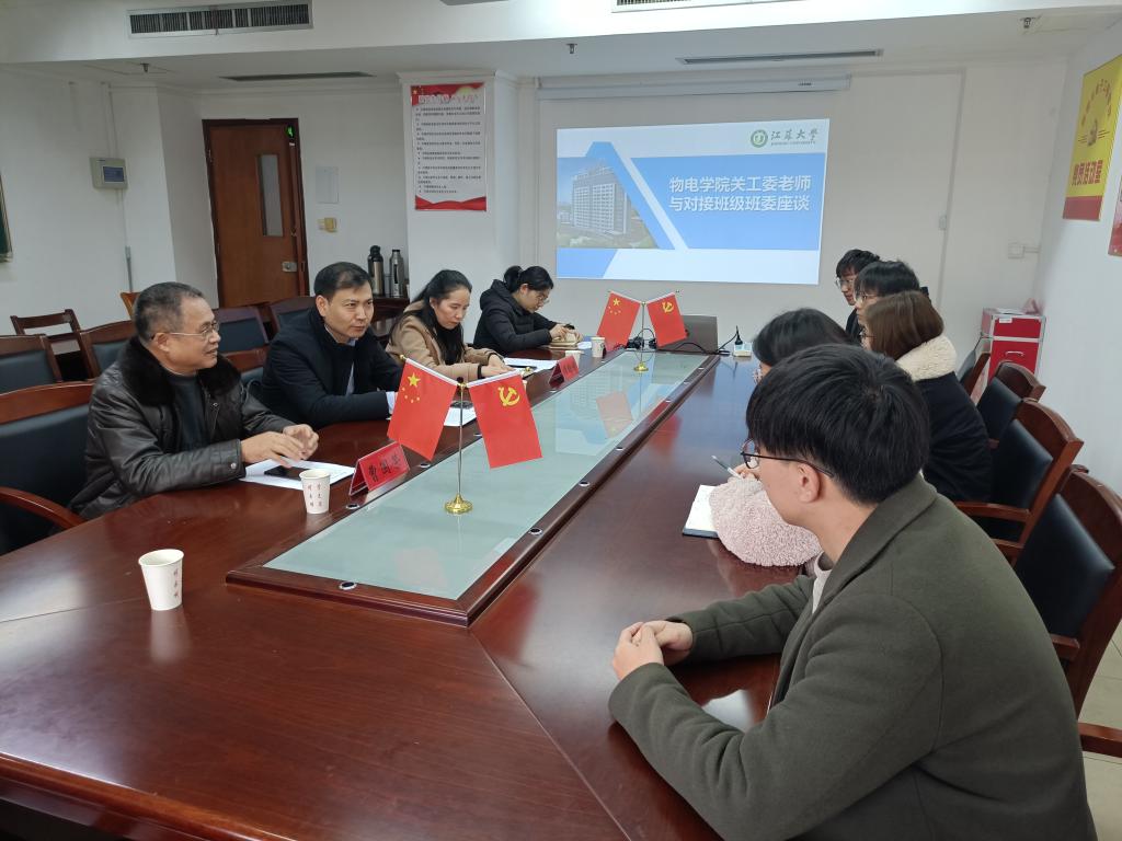12月15日,物电高清AV 关工委常务副主任曹国荣老师应邀参加结对班级班委会议,物师1901班班委参加了此次座谈会。
