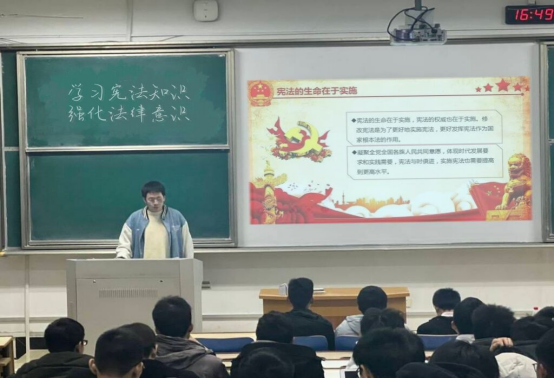 12月1日,高清AV 学生会研究生会共同在讲堂群202举办“学习宪法知识,强化法律意识”活动。本次活动由许苏洋、张奕杰主持,2021级本科和研究生参加。