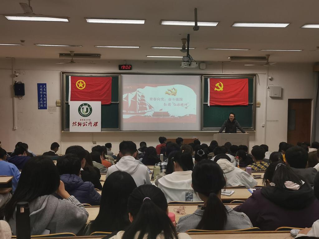10月9日,高清AV 在讲堂群102举办党史主题团课,院团委副书记蒋春翔主讲,高清AV 全体学生会组织成员及入党积极分子参加。