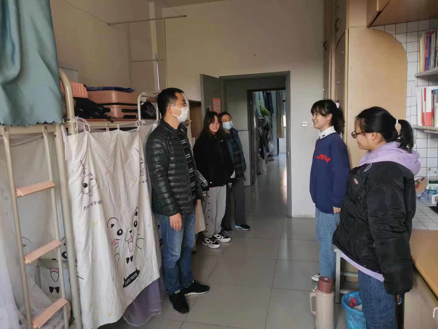 37日,高清AV 党委书记潘金彪,常务副院长陈元平,党委副书记、副院长顾瑜婷,物理系副主任徐晶以及全体专兼职辅导员分组走访了全院本研共94间学生宿舍。