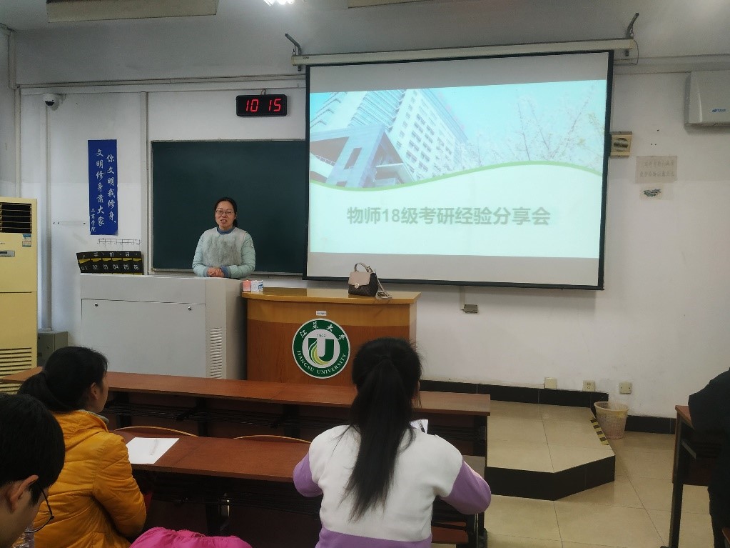 12月4日,高清AV 在三山楼110举办18级考研经验分享会。高清AV 副院长孙宏祥、物理师范1801学业导师葛勇、物理师范1802学业导师张培培、20级电子科学技术研究生沈雪敏、20级物理学研究生李杨及全体18级学生参与本次活动。分享会由张培培主持。