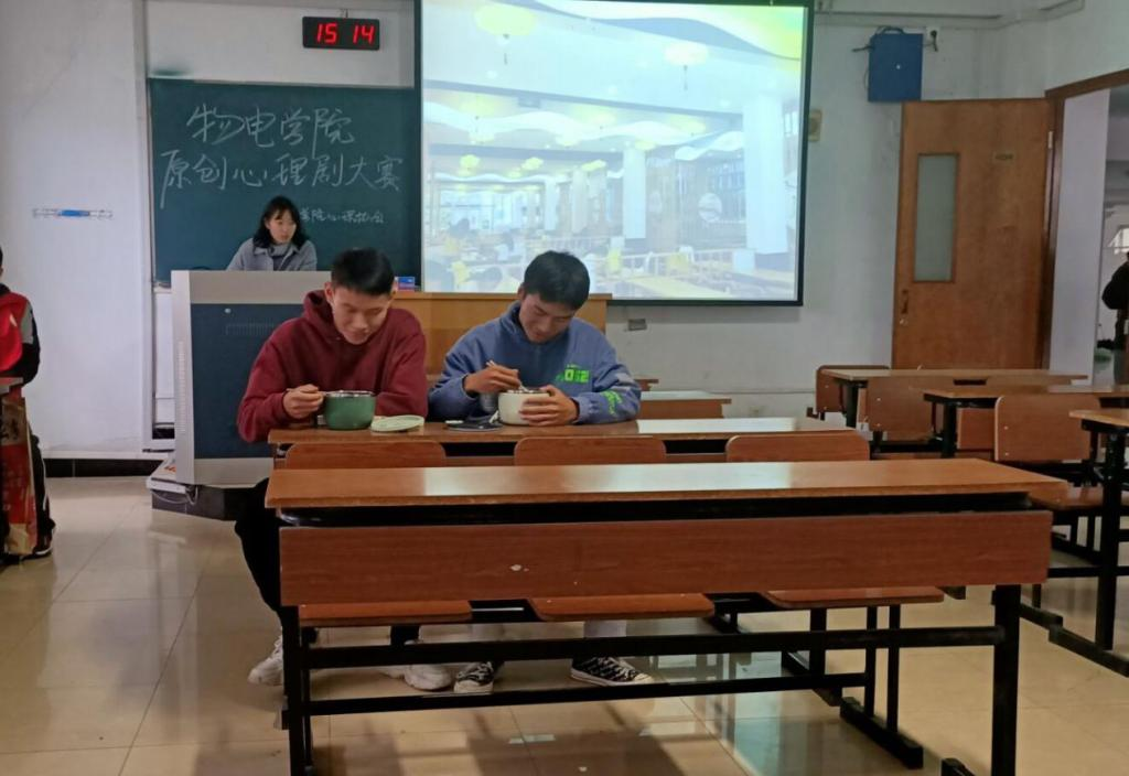 参加这次初赛的共有三支队伍,第一个表演的心理剧是物师2001班的《木偶》,讲述主人公在迷茫和失落中最终寻回本心的故事;然后是物师2003的《抗疫》,向我们讲述了疫情期间的那些感人故事;最后是物师2002带来的《谁的青春不迷茫》,讲述主人公在经过大学生活的迷茫期后,找到人生方向并为之奋斗的故事。