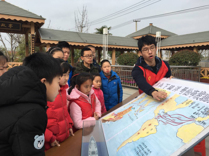 上午8时,志愿者在金江社区服务中心集合并做相关准备以迎接金江社区孩子们的到来。此次活动共分三个环节。首先,志愿者为孩子们讲解手绘的航海图,结合航海图,志愿者为孩子们讲解了郑和下西洋以及哥伦布发现新大陆的故事。讲解过程中,孩子们与志愿者积极互动,志愿者结合自己所学,为孩子们进行细致的讲解。其次,在观看完航海图后,志愿者拿出准备好的052C驱逐舰以及“辽宁号”的模型,给孩子观摩并结合模型介绍这两艘中国海军的重要战舰。孩子们听的很入迷,对军舰的相关装备提出疑问,志愿者为孩子们进行了专业的解答。最后,观摩完军舰模型后,志愿者赠给孩子们木质船具模型邀请孩子们动手拼接。通过动手操作,孩子们切实感受到了航海的魅力。