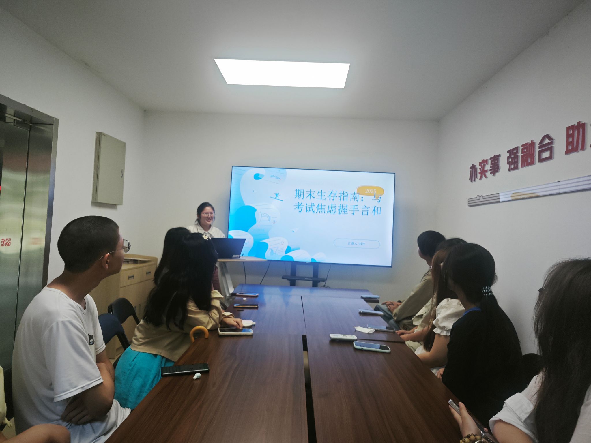 活动现场,心理委员们依次展示 PPT,从不同角度分享应对考试焦虑的方法。有的班级计划通过播放减压视频、开展冥想体验,帮助同学们放松身心;有的设计了“焦虑情绪匿名分享箱”,鼓励大家倾诉烦恼,并组织小组讨论解决方案;还有的引入成功案例分析,结合心理学知识,讲解如何调整考试心态。PPT 中丰富的图文、详实的流程设计,充分展现了心理委员们的用心与创意。