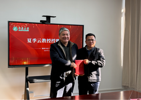 座谈会上,陈元平代表学院对夏季云的到来表示欢迎,并为其颁发“课程指导专家”聘书。陈元平指出,南京市第一中学在基础教育课程改革和教师队伍建设方面经验丰富、成果显著,对高校师范专业建设具有重要示范和借鉴意义。夏季云副校长此次受聘,将有力促进学院物理师范专业内涵式发展和人才培养质量提升。夏季云表示,将充分发挥基础教育与高等教育之间的桥梁纽带作用,推动双方在课程体系建设、实践教学改革和师资协同培养等方面的深度合作,助力学院师范专业认证(三级)工作和教学质量持续提升。